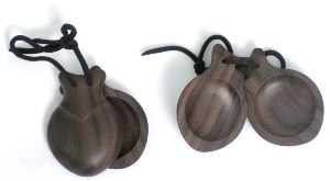 В оркестре применяется упрощенная разновидность кастаньет: две пары деревянных раковин, насаженных на концы рукоятки.