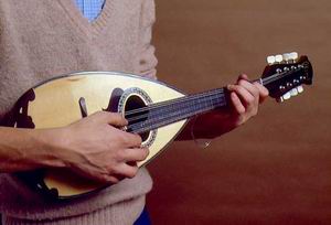 По форме мандолина очень похожа на лютню. На ее восьми струнах, настроенных попарно, играют медиатором.