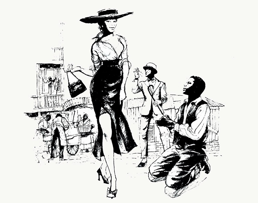 Появляется, пошатываясь, Спортинг Лайф. Он явно нетрезв. Направо и налево сыплет он плоскими, пошлыми шутками, издевается над церковными притчами и обрядами, задирает гуляющих.